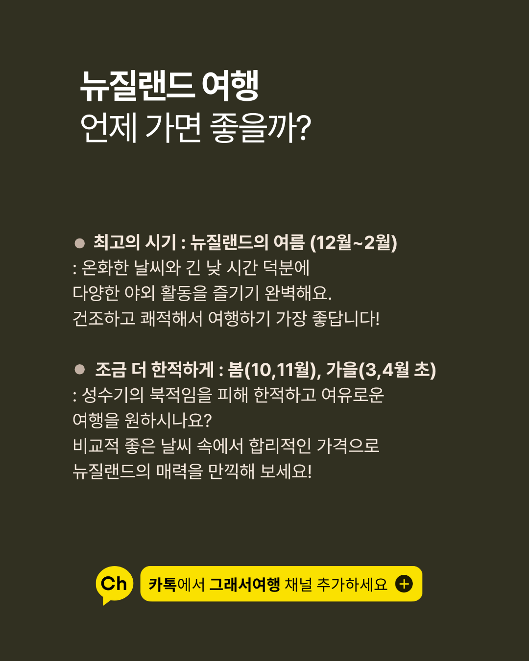 ✅ 뉴질랜드를 여행하기 좋은 시기는 언제일까?